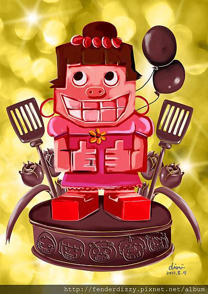 創作理念:為了慶祝豬女結婚!!剛好看到木人的雕橡還蠻適合這次的賀圖!!